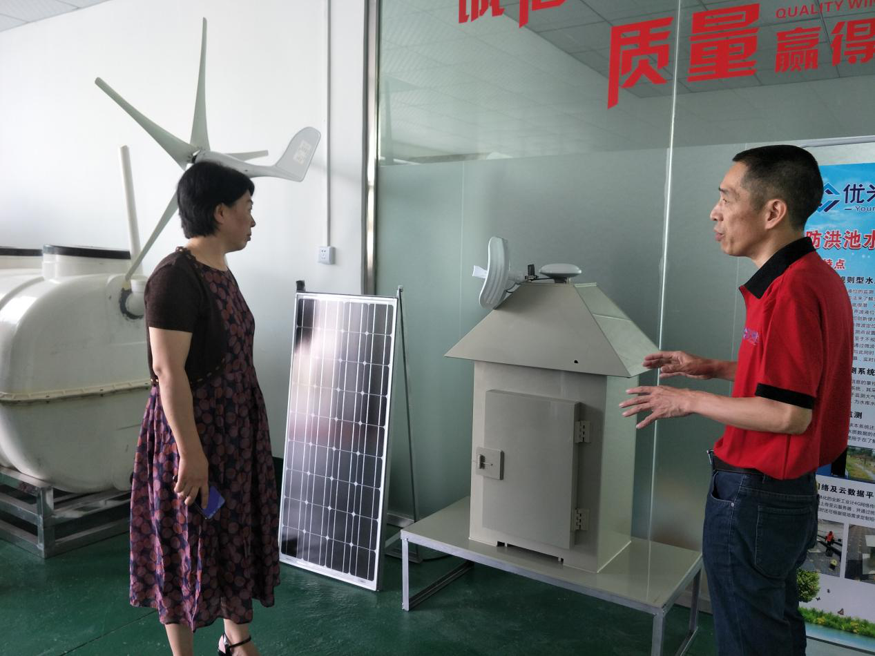公司總經(jīng)理向羅部長(zhǎng)一行詳細(xì)介紹了庫(kù)區(qū)液位智能監(jiān)測(cè)系統(tǒng)及風(fēng)光發(fā)電的運(yùn)用