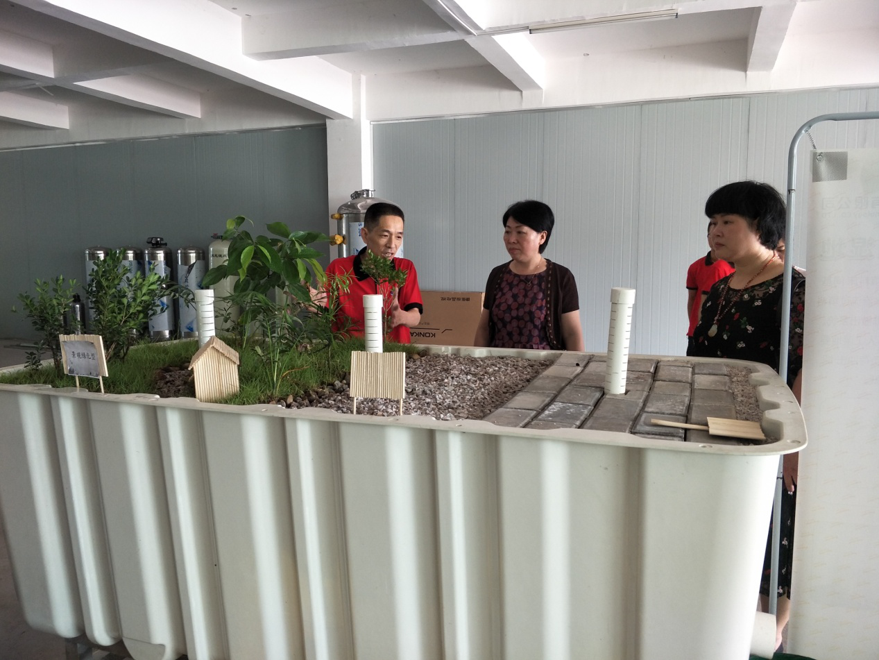 公司總經(jīng)理向羅部長(zhǎng)一行介紹新一代呼吸型人工濕地